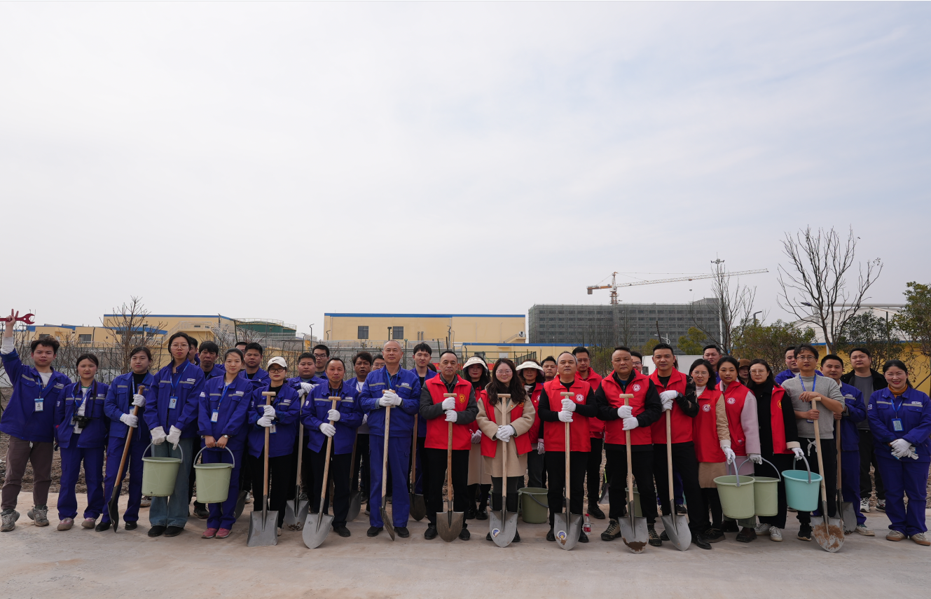 活動(dòng)初始,鄭總對黨群工作部一行人的到來表示熱烈歡迎,并強(qiáng)調(diào),聯(lián)合水務(wù)荊州公司有幸與荊州經(jīng)開區(qū)黨群工作部一同開展植樹活動(dòng),我們將貫徹愛綠、植綠、護(hù)綠的文明風(fēng)尚,踐行保質(zhì)保量保時(shí)的安全生產(chǎn),為荊州經(jīng)開區(qū)園區(qū)企業(yè)提供高質(zhì)高效綠色的污水處理服務(wù)。伴隨著激烈的掌聲植樹活動(dòng)宣告開始,活動(dòng)現(xiàn)場春意盎然,生機(jī)勃勃,黨群工作部人員與聯(lián)合水務(wù)荊州公司職工有序領(lǐng)取樹苗,拿工具,相互配合,一起揮鍬鏟土、培土圍堰、提水澆灌,合力種下10余株桂花樹和200余株香樟苗,現(xiàn)場一派熱火朝天、熱鬧忙碌的景象。經(jīng)過大家的共同努力,一株株栽種的樹苗迎風(fēng)挺立,為新春增添一抹新綠。最后,工作部一行在鄭總的帶領(lǐng)下,依次參觀了廠區(qū)機(jī)械絮凝池、初沉池、二沉池、出水口、化驗(yàn)室和中控室。工作部表示,聯(lián)合水務(wù)荊州公司建設(shè)規(guī)格與實(shí)力相匹配,并贊許廠區(qū)環(huán)境整潔如新。