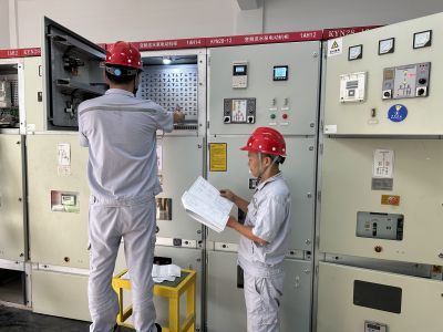 9月25日早晨六點(diǎn),高壓配電間改造的施工工人陸續(xù)入場,施工單位開始傅工線一側(cè)高壓電動(dòng)機(jī)和電容補(bǔ)償柜的并柜工作,為盡可能的減少施工過程中對王英水廠用電的影響,機(jī)電設(shè)備部電氣工程師萬朝偉也全程在現(xiàn)場配合,指導(dǎo)拆線與柜體安裝工作。下午六點(diǎn),隨著室外高壓電線桿上刀閘“咔嗒”一聲合上,傅工線的進(jìn)線柜三相指示燈亮起,傅工線一側(cè)的并柜工作順利完成。