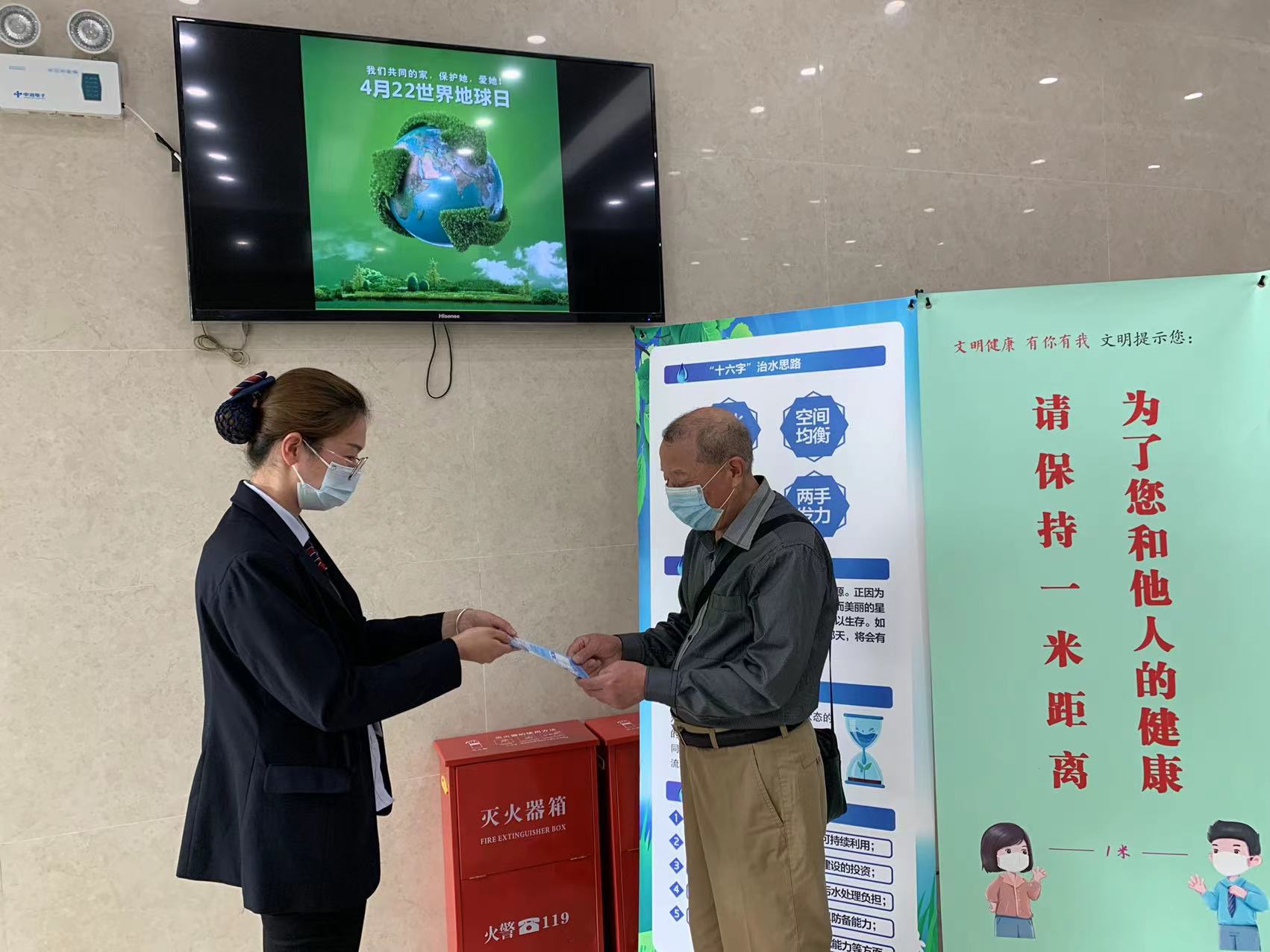 公司自發(fā)展以來,堅定不移踐行綠色發(fā)展觀念,積極開展公益宣傳活動,借世界地球日契機,客服部人員向前來辦理業(yè)務(wù)的客戶派發(fā)宣傳手冊,“今天是世界地球日,這里有一份節(jié)水用水小知識的手冊,我們邀請您參與節(jié)約水資源行動,希望您能向身邊的人也進行宣傳!笨头咳藛T向用戶介紹到。此次宣傳主要倡導(dǎo)廣大用戶提高節(jié)約用水、保護環(huán)境意識,得到了用戶的高度贊揚。