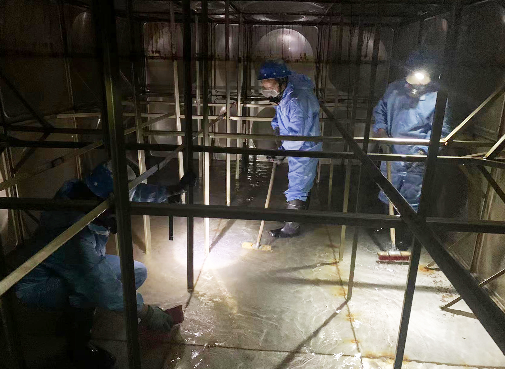 圖:水箱清洗現(xiàn)場(chǎng) 通過提前部署,穩(wěn)步推進(jìn),目前,公司夏季高峰供水工作正有序開展,聯(lián)合水務(wù)人以穩(wěn)扎穩(wěn)打的工作作風(fēng),提前部署落實(shí)各項(xiàng)保供措施,用更強(qiáng)的供水保障能力、更優(yōu)質(zhì)貼心的服務(wù),全力保障今夏居民用水安全。 |