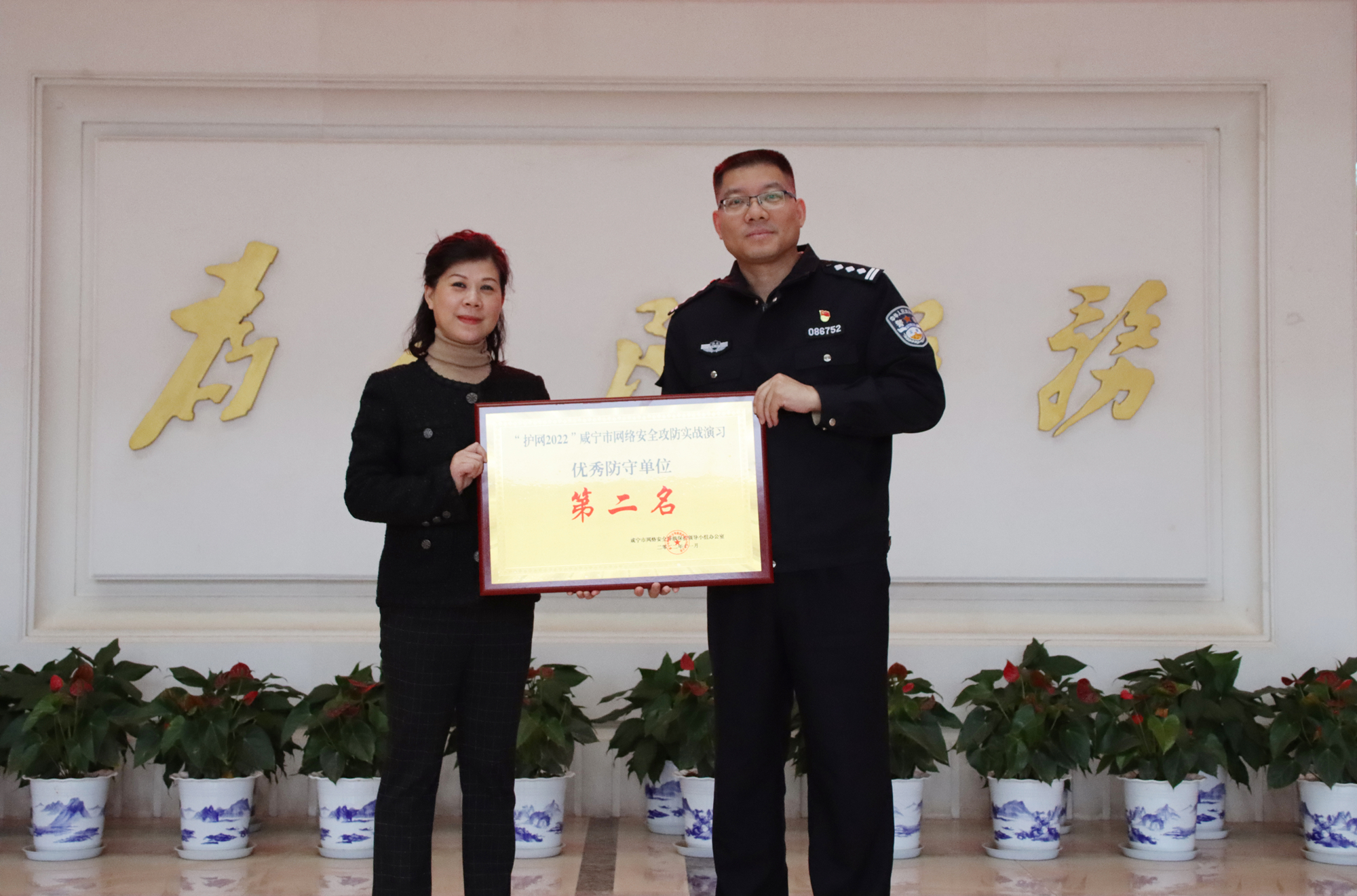 為深入貫徹黨的二十大精神和習(xí)近平總書(shū)記關(guān)于網(wǎng)絡(luò)強(qiáng)國(guó)的重要論述,近日,咸寧聯(lián)合水務(wù)有限公司順利完成了由咸寧市公安局組織開(kāi)展的咸寧市第二屆“護(hù)網(wǎng)2022”網(wǎng)絡(luò)安全攻防演習(xí)專(zhuān)項(xiàng)活動(dòng),并取得第二名的好成績(jī)。11月21日,咸寧市公安局網(wǎng)絡(luò)安全保衛(wèi)支隊(duì)副支隊(duì)長(zhǎng)楊智勇為咸寧聯(lián)合水務(wù)頒發(fā)榮譽(yù)獎(jiǎng)牌,聯(lián)合水務(wù)咸寧區(qū)域總經(jīng)理陶瑛代表公司領(lǐng)獎(jiǎng)。