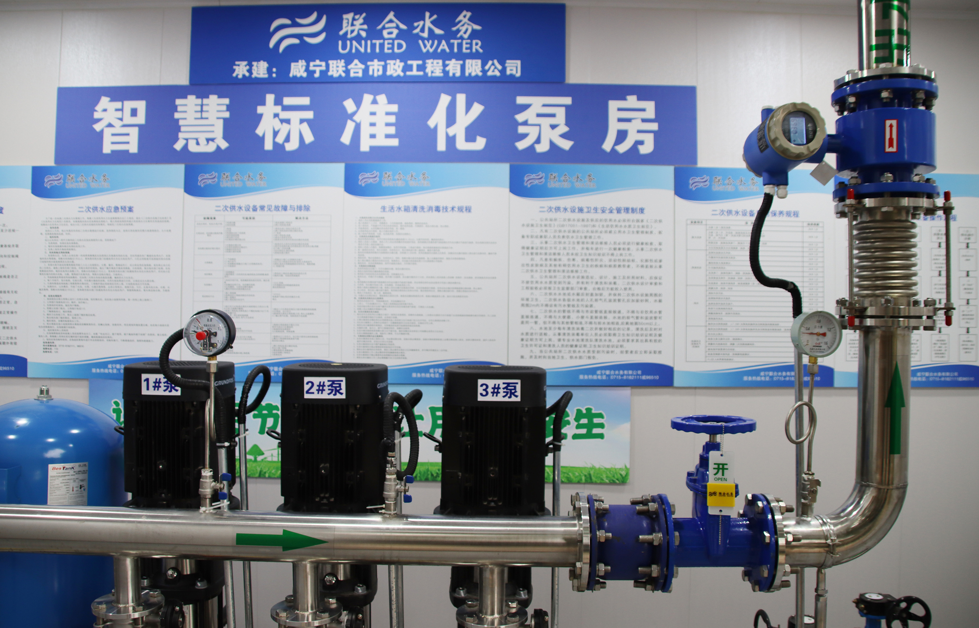 圖:冠苑小區(qū)新建的二次供水泵房 除了開展大量協(xié)調工作,咸寧聯(lián)合市政工程有限公司人員也盡量把施工方案做到最優(yōu)最細。根據(jù)該小區(qū)的實際現(xiàn)況,工作人員一遍遍勘察現(xiàn)場,多次優(yōu)化改造方案,最終確定采用箱泵一體化恒壓二次供水方式,施工人員向小區(qū)居民科普,之所以采用箱泵一體化恒壓二次供水,一方面是因為占地面積小,非常適合老舊小區(qū)二次供水改造;二是水箱供水采用紫外線消毒器,讓小區(qū)水質更有保障;三是采用遠程實時監(jiān)控無人值守智慧水務管理,管理員通過手機、電腦等互聯(lián)網(wǎng)就可以實時掌握二次供水泵房運行狀況,可及時發(fā)現(xiàn)故障,及時處理,增強運行可靠性。 “自從我們小區(qū)二次供水設施建成后,供水效果非常好,我們小區(qū)再沒有人反映水壓小了,隨時都能正常用水,小區(qū)居民都反映這個事情辦得好,感謝聯(lián)合水務工作人員的辛苦付出。”咸寧安苑物業(yè)有限公司(冠苑小區(qū))項目經(jīng)理王建對咸寧聯(lián)合市政工程有限公司的服務贊不絕口。