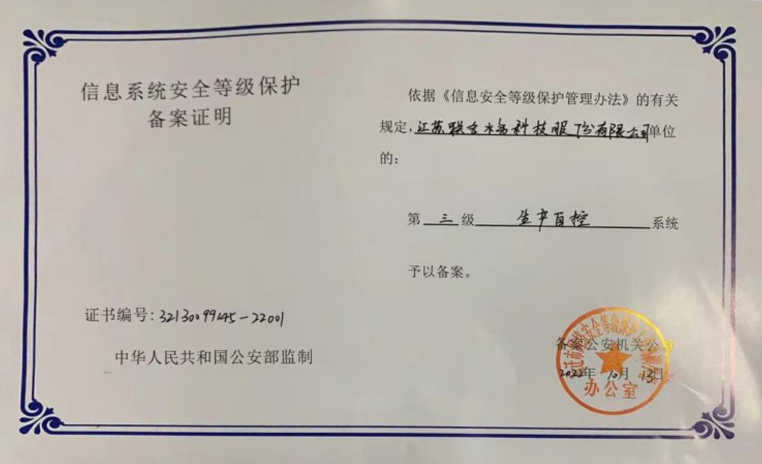 等級(jí)保護(hù)是我國(guó)信息安全基本國(guó)策,是落實(shí)監(jiān)管要求的重要舉措,江蘇聯(lián)合水務(wù)科技股份有限公司宿遷供水公司將會(huì)繼續(xù)做好信息網(wǎng)絡(luò)安全工作,嚴(yán)格落實(shí)國(guó)家相關(guān)網(wǎng)絡(luò)安全法規(guī)要求,提升網(wǎng)絡(luò)安全防護(hù)能力和水平,為全市供水提供堅(jiān)實(shí)的安全保障。