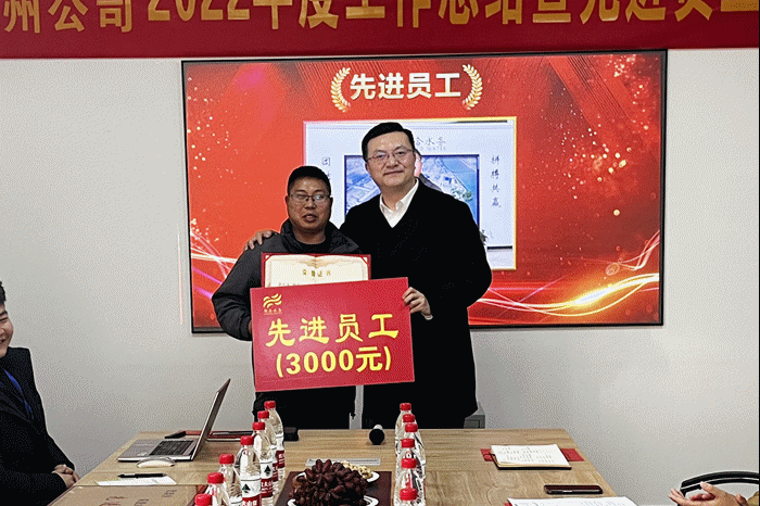 接著,楊總公布隨州公司2022年度先進(jìn)表彰決定及榮獲聯(lián)合水務(wù)2022年度投稿評選獲獎人員,化驗室榮獲“2022年度先進(jìn)部門”稱號、機(jī)電部主管張正元榮獲“2022年度先進(jìn)員工”稱號、人事行政部陳真真和生產(chǎn)部劉偉分別榮獲2022年度宣傳之星三等獎及2022年妙筆生花獎。劉總、朱總、黃總分別為其頒獎并合影留念,楊總鼓勵先進(jìn)部門及員工在新的一年里繼續(xù)發(fā)揮帶頭作用,不斷精進(jìn)自己,爭取為公司的發(fā)展做出更大的貢獻(xiàn)。同時,也希望各位同事能以先進(jìn)人員為榜樣,虛心好學(xué),踏實肯干,提高技能,做到自己與公司共同成長,共創(chuàng)未來。