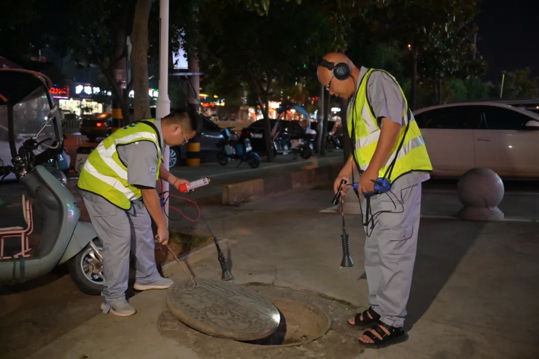 火“熱”奮戰(zhàn),加強管網(wǎng)巡查 為進一步保障城區(qū)供水管網(wǎng)運行安全,及時發(fā)現(xiàn)管道暗漏點,咸寧聯(lián)合水務管網(wǎng)探漏人員在炎炎夏日,沿著城區(qū)大街小巷對供水管道進行“體檢”。有時,需要安靜、車流量小的環(huán)境,他們就選擇深夜出動,一手拿著聽音桿,一手拿著手電筒,利用儀器檢聽供水管網(wǎng)運行情況,為能迅速判斷是否漏水以及精準定位漏水點,有時需要反復探測十幾次,力爭將各類管道漏水隱患扼殺在萌芽中。同時,在供水高峰期,探漏人員還將常態(tài)化開展管網(wǎng)巡查,將責任層層落實到個人,力求件件有人管,項項有落實,事事出成效,保障供水管網(wǎng)的運行安全穩(wěn)定。