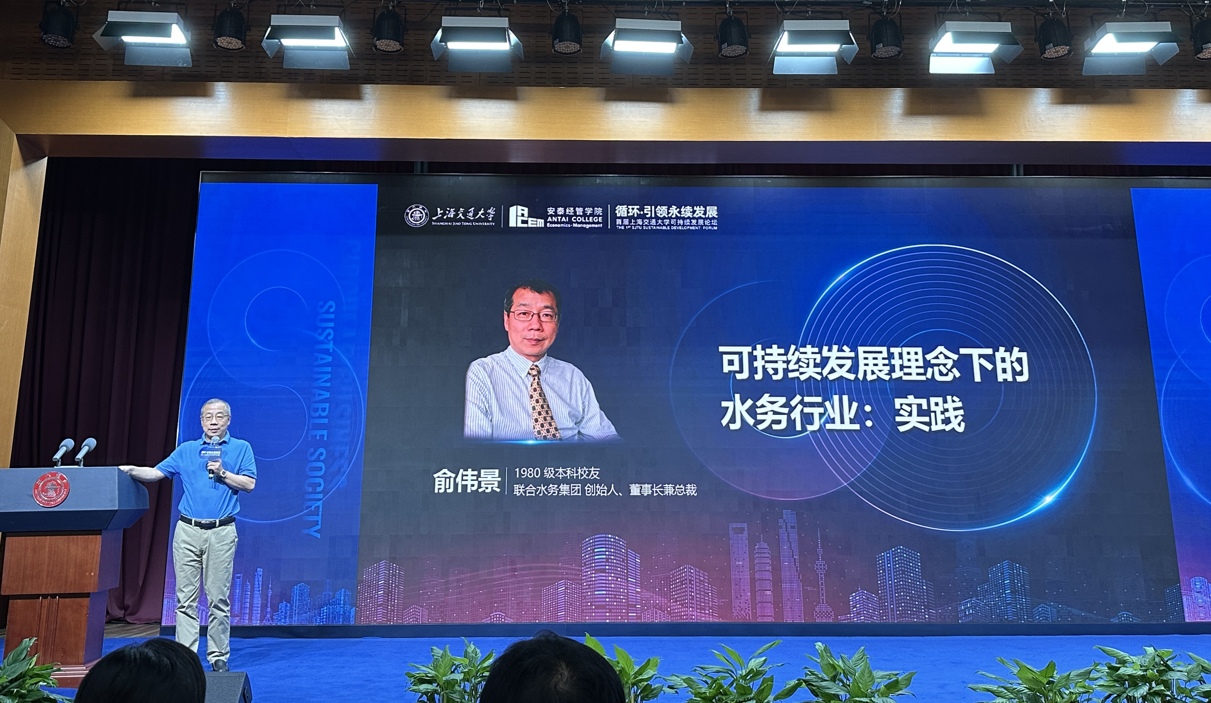 作為企業(yè)界的校友代表,俞偉景作了題為《可持續(xù)發(fā)展理念下的水務(wù)行業(yè):實踐》的主旨演講。俞偉景從我國水資源基本特征及水務(wù)行業(yè)中的供水、排水、再生水利用等方面介紹了水務(wù)行業(yè)的發(fā)展與現(xiàn)狀,并分享了水務(wù)行業(yè)圍繞可持續(xù)發(fā)展理念在新能源應(yīng)用、資源化利用、綜合治理一體化、智慧水務(wù)等方面的探索。他提及,聯(lián)合水務(wù)作為一家綜合性、全方位的水務(wù)公司,積極踐行可持續(xù)發(fā)展理念,在污水資源化利用、智慧水務(wù)等方面已有豐富的實踐經(jīng)驗,并已開始在自有水廠探索與新能源的結(jié)合,實現(xiàn)節(jié)能降碳的目標。如今,公司邁入第二十個年頭,未來也將繼續(xù)開拓創(chuàng)新,創(chuàng)造新機遇,增添新動力。