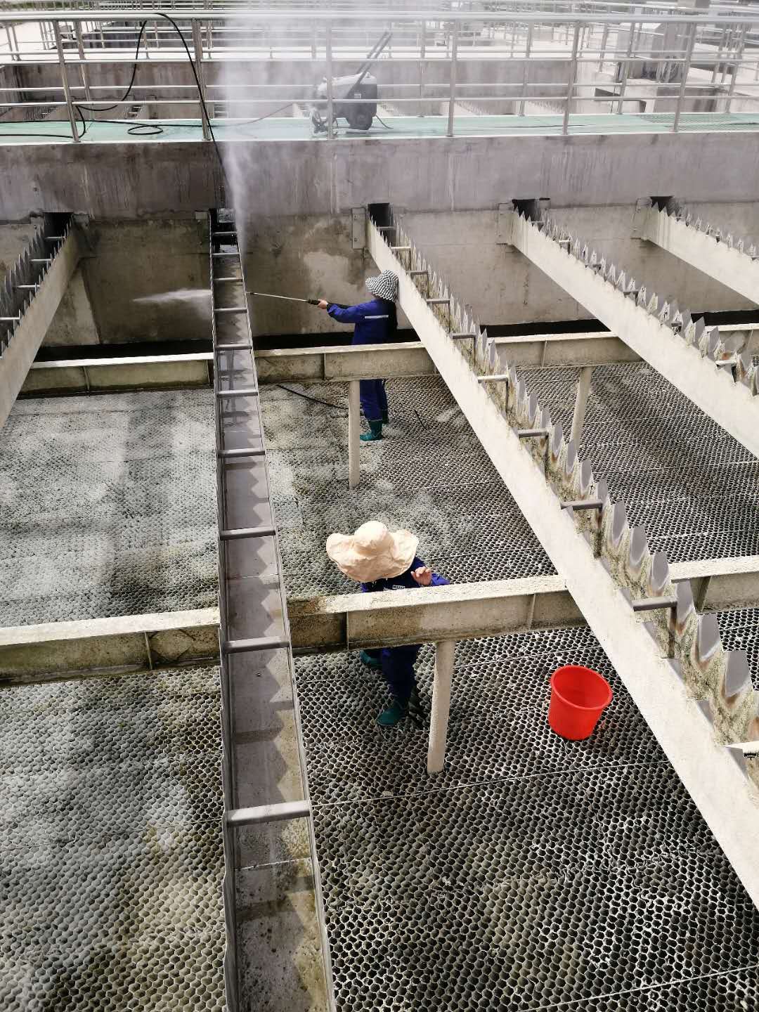 圖1:?jiǎn)T工清洗斜管沉淀池