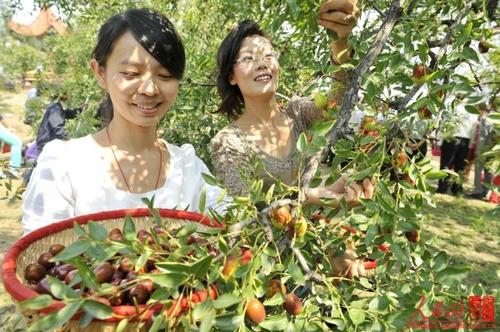 棗林園區(qū) 在這里,我像是看見自己在秦末的農(nóng)民起義中,驍勇善戰(zhàn),北攻趙池,南征九江。我好像來過,又好似遺棄,在那棵斑駁的樹影下,跳動的是我留下的馬蹄印。對的,盡管我叱咤戰(zhàn)場,風(fēng)云所極,最后我又回到了這里,娶妻生子,就坐在那棵老樹下,對著兒孫們吹噓自己的英勇事跡。 在列國紛爭的年代,它們始終以一種陌生的姿態(tài),看著江山的起起伏伏。 這些老棗樹生生不息地滋養(yǎng)著稷山的子民,在老樹的周圍不斷有新生的小棗樹,生命力頑強,一代撫養(yǎng)著一代,經(jīng)久不衰。當(dāng)?shù)厝藶橹×藗綽號——“祖宗三代”,真的是子孫滿堂啊,一棵樹都活得這么有尊嚴(yán)。它們其樂融融地在這片土地上生根發(fā)芽,搖曳生姿,祖祖輩輩地在這里誕生著古老又年輕的靈魂。 沉溺在無比輕柔恬靜的擁抱里,向密密高高的樹頂望上去,此時的陽光就像閃爍的黃玻璃,訴說著生命的高歌。崎嶇不平的小路和路旁茂密的灌木叢,隔斷了外面的村鎮(zhèn),也隔斷了時間的伸延。樹葉的沙沙聲像似一種秘密的呼喚,閉上眼睛,盤起腿坐在樹下,想象自己幻化成勇士的樣子。 枝枝椏椏,滄桑變幻,兩人才能勉強合抱過來,更讓人驚奇的是樹上依舊掛滿了果實,大概它的根已經(jīng)伸到了汾河的源頭。 皇上愛吃的板棗 “江南橘紅日,塞北棗紅天”,江南橘子紅的日子,北方的棗便渲染了整個天空。棗子成熟之際,就是皇宮內(nèi)歌舞升平的時候。 據(jù)說有一天,皇帝微服出巡,行至稷山,看到當(dāng)?shù)氐墓倜衲信季奂舆,將紅棗擲至河中,嬉戲喧鬧,踏歌舞蹈。一幫文人雅客即興飲酒賦詩,得知是當(dāng)?shù)氐闹卮蠊?jié)日后皇帝詩興大發(fā),作詩三首,與民同樂,并一起品嘗板棗,大贊甜脆生香,飽腹而歸。 回宮后,皇帝和愛妃們共進(jìn)午餐,面對桌上的十幾道菜式,真的是吃膩了,滿腦子都是在稷山吃到的香甜脆口的板棗。食欲不振之下,皇帝按耐不住,趁著夜黑風(fēng)高爬遍了皇宮內(nèi)的棗樹,卻沒有找到和板棗一樣味道的。遂連日跋涉于稷山長安令家中索求當(dāng)?shù)匕鍡棧⒁贿B住下大半個月以飽口腹之欲,并且常食不厭。 后來當(dāng)?shù)毓賳T得知皇上愛吃板棗,便每年進(jìn)貢,從此稷山板棗成為“御棗”,專供皇家享用。 尋找匠人取真經(jīng) 烏雞在唱著歌,水鴨在說情話,笨拙地拖著肥碩的身子漫步。 給自家二十多畝的棗園施完肥后,天已向晚,58歲的王大伯拖著鋤頭走到田埂邊累的一句話都不想說。比他大兩歲的老伴緊跟在身后,兩個人身上滿是土,種了一輩子的棗樹,已經(jīng)習(xí)慣這樣的狀態(tài)了。 看看這片老祖先留下來的棗林被老兩口打理得依然有序,不禁佩服,我們走過去打招呼,大伯憨笑,大媽靦腆:“從小就在這棗林里長大,記得小的時候就天天爬樹,不知磨壞了多少條褲子,棗子熟得時候更是這樣,每天都在這里摘棗打棗吃棗,可好吃呢……”說起童年,大媽疲憊的臉上綻出了笑容,看著頭頂上的棗樹平靜地說:“老祖宗留下來的東西,要好好種! 在王大伯家討了些棗子,未到嘴邊就已聞到濃濃的醇香,肥碩的果實很有彈性,意猶未盡。關(guān)鍵是這種板棗可以拉絲,掰開后能拉出2-3厘米長的金黃色糖絲。
