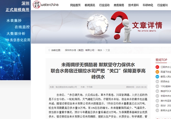 炎炎高溫季,滴滴清泉水,生命之源,不可或缺。確保一年一度的夏季高峰供水安全是供水企業(yè)一項(xiàng)艱巨的任務(wù)。今年夏季高溫到來前,宿遷銀控自來水有限公司未雨綢繆,制定多項(xiàng)措施,確保圓滿完成今夏高峰供水任務(wù)。與此同時,高峰供水宣傳工作也同步展開,制定了詳細(xì)的宣傳方案,擔(dān)負(fù)起公司夏季高峰保供水上情下達(dá)、下情上知、內(nèi)外交流的重要職能。通過高峰供水宣傳引導(dǎo),公司內(nèi)部在規(guī)范管理、提高效益和效率、優(yōu)質(zhì)服務(wù)等多方面下功夫,扎實(shí)推進(jìn),激發(fā)員工正能量;對外界,準(zhǔn)確傳達(dá)公司供水的有力舉措、打贏高峰供水保衛(wèi)戰(zhàn)的決心,展示我們的優(yōu)質(zhì)供水服務(wù),傳遞公司節(jié)水、護(hù)水、愛水的理念,樹立公司良好的社會形象,贏得了社會各界的廣泛認(rèn)可。 打好報(bào)社傳統(tǒng)媒體與新媒體組合拳。市級主流媒體《宿遷日報(bào)》是每年都要宣傳的傳統(tǒng)媒體平臺,隨著新媒體開發(fā),“速新聞”、“宿遷網(wǎng)”、“宿遷手機(jī)臺”、微信公眾號等一些與時俱進(jìn)的新媒體方式也層出不窮。今年公司的宣傳以《宿遷日報(bào)》、《宿遷日報(bào)宿豫版》傳統(tǒng)媒體為依托,同時采用了“速新聞”、公司微信公眾號推送系列報(bào)道、員工發(fā)微信朋友圈等方式,更利于提升宣傳效果。