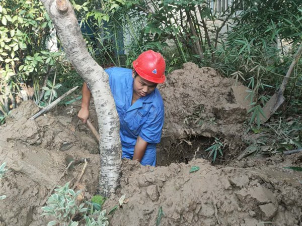 “天階夜色涼如水,臥看牽?椗恰。七夕已至,夜猶未涼?崾罹t遲不愿離去,仍然煥發(fā)著三十多度的“高漲熱情”,催人汗流,莫不是也在等待這天上人間鵲橋一會(huì)?!聯(lián)合水務(wù)人將這份對(duì)美好生活的向往,化作斗酷暑戰(zhàn)高溫的力量,彰顯聯(lián)合水務(wù)精神,擔(dān)當(dāng)供水護(hù)水責(zé)任,將絲絲清泉送入千家萬(wàn)戶,使滴滴污水變條條清渠,護(hù)衛(wèi)著一座座城市命脈。 遙寄銀河喜相會(huì),守護(hù)人間浪漫情。“七夕”節(jié),聯(lián)合水務(wù)人這樣度過(guò)。 盤根錯(cuò)節(jié)間抽繭剝絲忙搶修。老舊小區(qū)的管道鋪設(shè)往往無(wú)章可循,隱匿于綠化樹(shù)下的比比皆是。宿遷銀控供水公司管網(wǎng)部的馬振接到報(bào)修后,緊急趕往府苑小區(qū)現(xiàn)場(chǎng),水從一片竹林滲出,成片綠植生長(zhǎng)多年,根系發(fā)達(dá)且盤根錯(cuò)節(jié),只能人工用鐵鍬一點(diǎn)點(diǎn)開(kāi)挖查找漏水點(diǎn),身上、臉上是汗水,褲腿是泥水,和著稀泥,樹(shù)根很滑,一根根挖斷,慢慢剝離出管道,緊急搶修好,帶著一身泥濘,趕赴下一個(gè)搶修點(diǎn)。