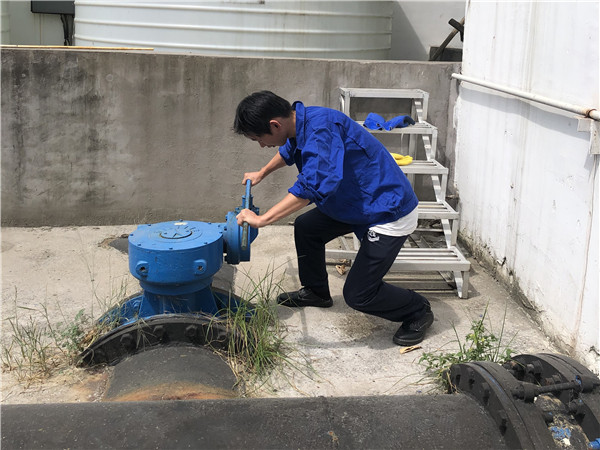 苗帥 烈日下堅(jiān)守,保障污水生產(chǎn)安全。污水凈化回用,還城市一份潔凈的世界,給市民一個(gè)清涼的夏日。桐鄉(xiāng)污水公司生產(chǎn)部運(yùn)行工顧振賢像往日一樣仔細(xì)巡查著生產(chǎn)區(qū),閥門有些松動(dòng)的跡象,安全生產(chǎn)不可馬虎,一定要防微杜漸,立即找來(lái)工具,使出渾身的力氣,擰一擰,緊一緊,終于可以放心。汗水濕透衣背,這是最美的“蹲馬步”。