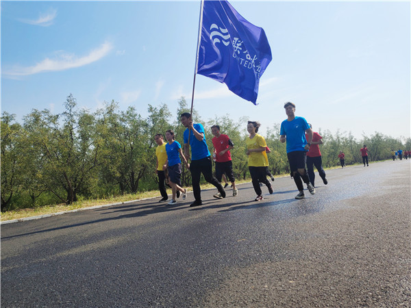 (圖1:聯(lián)合水務(wù)真“精彩”) 上午10:00,隨著主辦方領(lǐng)導(dǎo)一聲令下,參與活動的運動達人們沿著黃河廊道開始奔跑,來自三門峽聯(lián)合水務(wù)的12名運動健兒,揮舞著聯(lián)合水務(wù)集團旗幟,欣賞著明清古棗林至老城渡口沿途多姿多彩的美景。聯(lián)合水務(wù)團隊成員英姿颯爽的身影和過硬的身體素質(zhì)一路上獲贊無數(shù),三門峽聯(lián)合水務(wù)的風(fēng)采讓大眾印象深刻,用實際行動傳揚聯(lián)合水務(wù)集團“團結(jié)誠信 拼搏 共贏”的企業(yè)文化。
