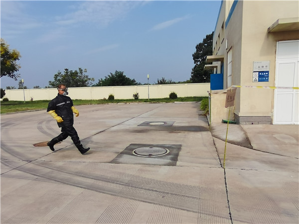 “鹽酸間外側(cè)儲(chǔ)液罐管道漏液,鹽酸正在泄漏,情況十分緊急,請立即來現(xiàn)場處置!” 9月10日9時(shí)10分,隨著值班電話鈴聲的急促響起,一場鹽酸泄漏應(yīng)急演練在三門峽聯(lián)合水務(wù)有限公司緊急展開。演練涉及制水部、水質(zhì)檢測中心、人事行政部等多個(gè)部門,公司全員參加了演練和觀摩。 本次演練以“消除安全隱患,筑牢安全防線”為主題,演練開始前,全員學(xué)習(xí)了廠內(nèi);返奶匦、預(yù)防和急救、泄露等處置措施,并現(xiàn)場示范了正確使用與佩戴安全防護(hù)用品的方法。險(xiǎn)情突發(fā),應(yīng)急指揮部立即啟動(dòng)應(yīng)急預(yù)案,各小組快速進(jìn)入應(yīng)急部署,穿戴防護(hù)用品進(jìn)行現(xiàn)場搶險(xiǎn)救援,工作人員撤離至安全區(qū)域。經(jīng)過搶險(xiǎn),泄露點(diǎn)成功堵漏,鹽酸泄漏得到控制,未對環(huán)境和生產(chǎn)造成影響。
