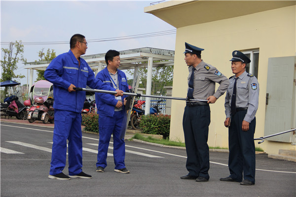 圖:反恐防暴演練現(xiàn)場(chǎng) “放下武器,不準(zhǔn)動(dòng)”。反恐防暴演練在緊張激烈的斗爭(zhēng)中開(kāi)啟。演練現(xiàn)場(chǎng)在王英水廠正門(mén),一名可疑人員持兇器強(qiáng)行進(jìn)入水廠,盡管保安人員一再言語(yǔ)阻止,但可疑人員依舊我行我素,采取翻越柵欄方式進(jìn)入水廠。保安人員第一時(shí)間拿起盾牌、警棍、鋼叉等警用防暴工具,迅速將可疑人員制服,順利完成此次反恐防暴演練。