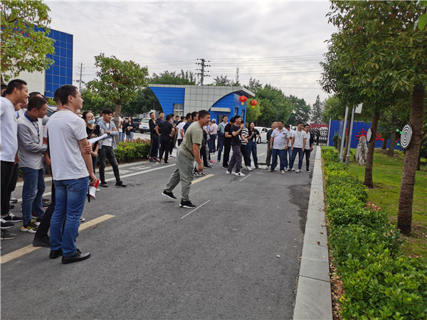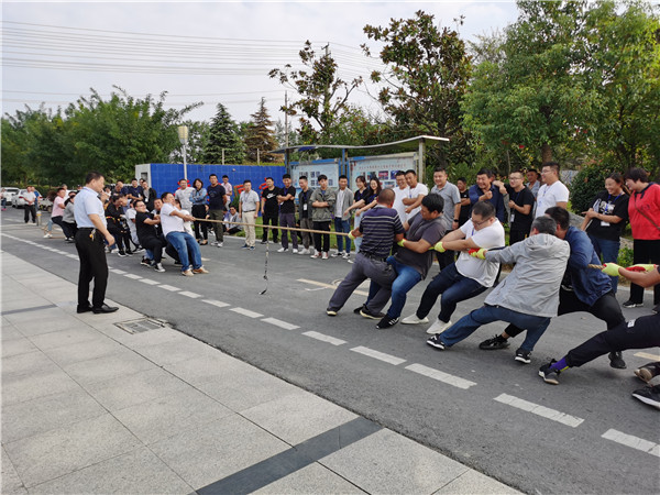 在這桂花飄香、秋風(fēng)送爽的美好時節(jié),我們迎來了偉大祖國的71歲生日。帶著驕傲與自豪,舉國歡騰,共慶盛世華年。9月29日,在聯(lián)合水務(wù)宿遷供水公司第二水廠,吶喊聲、助威聲、歡聲笑語匯聚成歡樂的海洋,這里正在舉行一場別開生面的國慶佳節(jié)慶祝活動——“迎國慶”員工趣味活動。來自公司各分公司、各部門的200多名員工,參與了各項賽事的角逐,人事行政副總經(jīng)理陳少軍、客服運(yùn)營副總經(jīng)理尹邦交、客戶服務(wù)總監(jiān)郁莉、總經(jīng)理助理薛江寧親臨現(xiàn)場,為參賽選手們加油、助威。 今年的國慶活動共4個項目,分上、下午兩場。上午舉行的是單人項目投飛鏢和團(tuán)體項目單腳跑火車,下午舉行的是頂球跑和拔河,活動地點(diǎn)在辦公樓前廣場。大紅燈籠高高掛,火紅的橫幅拉起來,國慶節(jié)氛圍營造,讓人激情澎湃,辦公樓上“團(tuán)結(jié)、誠信、拼搏、共贏”的企業(yè)精神催人奮進(jìn)。 上午9:00,陽光明媚,秋意盈人,活動正式拉開序幕。第一個項目是單人項目投飛鏢。參賽選手不分男女,投鏢距離3米,每人投3次,成績累計為個人總成績。此項目趣味性強(qiáng),參與度廣,多達(dá)130人報名參加。比賽分兩個隊同時進(jìn)行,大家秩序井然,水平參差不齊,高手連中三個9環(huán),引來掌聲不斷,投空的也不在少數(shù),如“蚯蚓走姥姥家”——七拐八拐就是不往靶盤上去,有跟樹過不去的,有飛入草坪的,引來陣陣哄笑,好不熱鬧。最終,龍河服務(wù)中心的劉賽以27環(huán)的總成績摘得桂冠。
