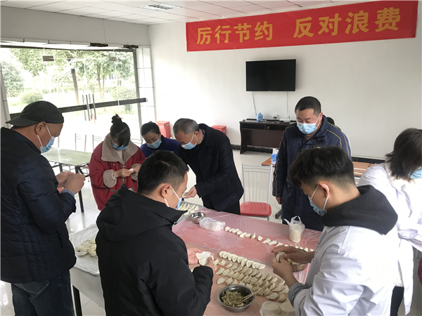 大家在“厲行節(jié)約、反對浪費(fèi)”的大紅橫幅印照下,你追我趕、相互促進(jìn),充分發(fā)揚(yáng)了聯(lián)合水務(wù)“團(tuán)結(jié)”就是力量的企業(yè)文化精神,體現(xiàn)了人多效率高、人心齊泰山移的特點(diǎn)。不到一個小時,一個個有棱有形、元寶模樣的餃子,一排排、一行行,錯落有致、排列整齊地出現(xiàn)在我們眼前,就像一個個紀(jì)律嚴(yán)明、軍容赫赫的士兵即將奔赴戰(zhàn)場,大家彼此相視露出勝利般的欣慰笑容。