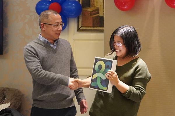 總裁俞偉景發(fā)表活動致辭 “鴻運(yùn)當(dāng)頭”的驚喜抽獎把整個活動推向高潮。在每一個大獎開獎之前,大家都屏神凝氣,熱血沸騰;開獎后,中獎的同事為鴻運(yùn)歡呼雀躍,其他同事也熱烈鼓掌祝賀,為活動增添了無數(shù)歡聲笑語。在活動即將落幕的時候,俞總帶領(lǐng)大家共同唱響生日歌,為近期慶生的同事舉辦生日會,并為壽星們送上書籍。生日會傾注了集團(tuán)對每一位員工的關(guān)懷與愛護(hù),F(xiàn)場活躍的氣氛極大的調(diào)動了每一位員工的企業(yè)融入感,在寒冬里溫暖了大家的心房。