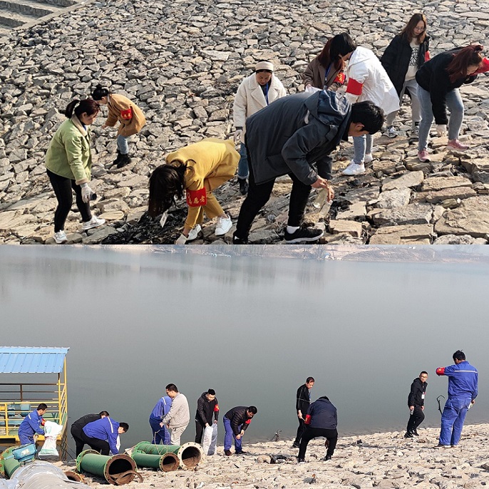 圖一:聯(lián)合水務(wù)山西區(qū)域世界水日活動(dòng) 上午九時(shí)開始,在保證安全的情況下,員工們?nèi)宄扇骸⒆杂山Y(jié)合,到禹門口水利工程三泉水庫水源地清理垃圾,為保護(hù)水資源貢獻(xiàn)自己的微薄力量。雖不能保證能將垃圾全部清除,但至少因?yàn)橛形覀,可以讓它多一份純潔、干凈?