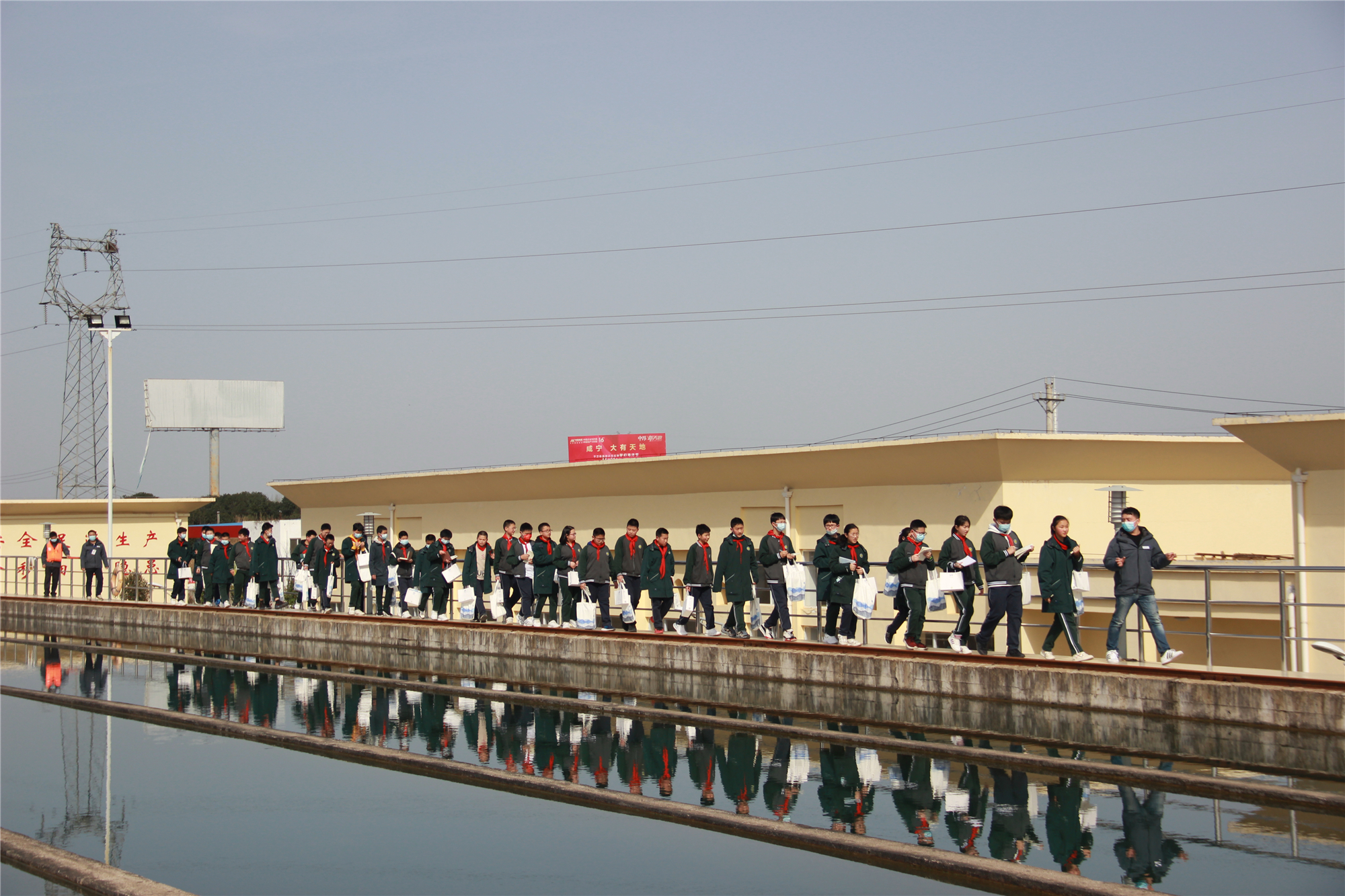圖:王英水廠合照 在解說員的引導(dǎo)下,同學(xué)們參觀了混合井、平流沉淀池、V型濾池等一系列制水工藝流程,龐大的制水系統(tǒng),令每一位學(xué)子眼界大開。