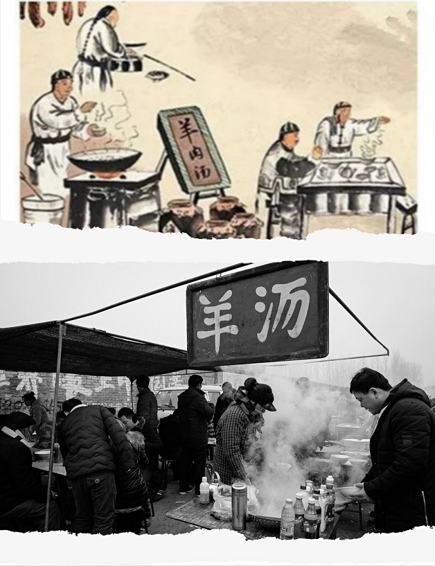 圖:鄉(xiāng)間羊雜懶攤 小時(shí)候的記憶里,雜懶只是逢集或者開過年有集會(huì),才能喝到。那種味道,回味起來是無法形容的,F(xiàn)在條件好了,一到冬天,買一副羊下碎(或下水),自己煮雜懶。一副雜懶一家人能吃一個(gè)禮拜,配上羊油澆的辣椒,放點(diǎn)胡椒粉,在撒上香菜、蔥絲,那個(gè)美啊。一家人坐在一起,喝著熱乎乎的羊湯,其樂融融,好不快哉。