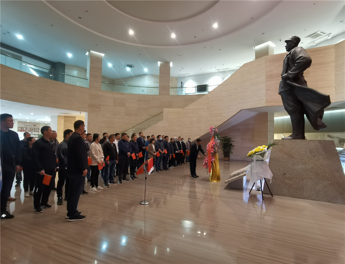 圖:公司參觀隊(duì)伍排列整齊,浩浩蕩蕩向朱瑞將軍紀(jì)念館進(jìn)發(fā) 上午8:10分,公司黨委正式黨員、預(yù)備黨員、發(fā)展對象和申請入黨人員共計(jì)54人在宿城區(qū)政府廣場北門集合,公司黨委書記曾真同志、黨委副書記陳少軍同志早早來到集合地點(diǎn)等候參觀。大家排成整齊的隊(duì)伍,懷著無比激動的心情,沿著古黃河景區(qū)道路浩浩蕩蕩向紀(jì)念館進(jìn)發(fā)。經(jīng)過二十幾分鐘的“行軍”,到達(dá)朱瑞將軍紀(jì)念館。進(jìn)入展館,迎面便是朱瑞將軍雕像,雕像背面鐫刻著毛主席的親筆題詞“人民的炮兵萬歲”,F(xiàn)場,公司全體參觀人員向朱瑞將軍雕像敬獻(xiàn)花籃,并在朱瑞將軍雕像前重溫了入黨誓詞。