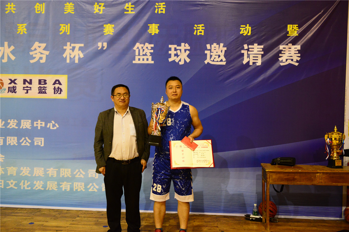 體育事業(yè)發(fā)展中心周主任為聯(lián)合水務(wù)頒發(fā)亞軍獎杯 邀請賽于4月15日在金葉體育館和CBD球館開賽,歷經(jīng)8天的38場比賽,戰(zhàn)況激烈,精彩紛呈奪人眼球。“更高、更快、更強”,攻與防、突與投,加油鼓勁、吶喊助威,每球必爭、每分必奪,現(xiàn)場氣氛異常熱烈,競技水平全面提升。高昂的斗志,高超的球藝,頑強的精神,賽出了水平、風格和友誼,賽出了良好的賽風賽紀,賽出了滿滿的正能量,也賽出了屬于自己的榮耀。最后,咸安區(qū)、聯(lián)合水務(wù)、市稅務(wù)局三支籃球代表隊分獲冠亞季軍,市委市政府兩辦、市委組織部代表隊獲得“精神文明獎”,省王英水庫管理局、區(qū)綠投代表隊獲得“最佳團隊獎”。 閉幕式由咸寧市籃協(xié)秘書長王漢富主持,邀請賽裁判長劉勇宣讀了比賽結(jié)果,咸安區(qū)人民政府副區(qū)長陳偉、國家稅務(wù)總局咸寧市稅務(wù)局副局長程志平、咸寧市土地儲備開發(fā)交易中心主任吳達勝、咸寧市體育事業(yè)發(fā)展中心副主任周方亮、群體部部長李金星、聯(lián)合水務(wù)集團咸寧區(qū)域總經(jīng)理陶瑛等領(lǐng)導和嘉賓出席閉幕式并頒獎。