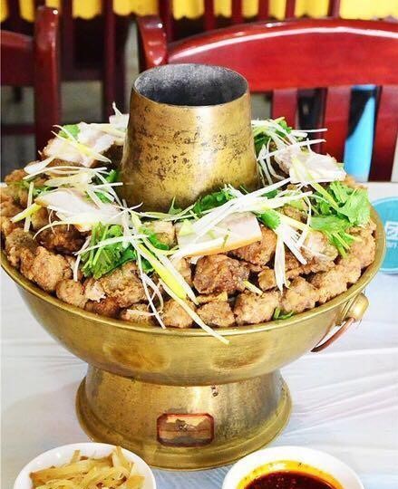 (圖:紅紅火火) 絳州銅火鍋 “新絳火鍋”有著悠久的歷史,在當(dāng)?shù)匕傩招闹姓紦?jù)重要位置,一鍋熱氣騰騰、紅紅火火的“新絳火鍋”,是新絳人招待親友、闔家共聚的不二之選。 新絳火鍋保留了最早銅火鍋的原汁原味,以味鮮湯美、入口咸香、回味悠長著稱。該火鍋采用極富古絳州特色的銅火鍋為器皿,以木炭為燃料、熬制的老湯為湯料,選用經(jīng)過煮、炸、燉、蒸的五花肉片、排骨、酥肉、油炸肉丸、粉條、海帶、豆腐、白菜等菜肴,經(jīng)過科學(xué)搭配,不僅營養(yǎng)豐富,而且美味可口。與其他火鍋相比,絳州銅火鍋不僅口感細(xì)膩、味道鮮美,外加經(jīng)濟(jì)實(shí)惠,而且其內(nèi)含的銅、鋅等微量元素正為人體所需。銅火鍋鍋腹大,能容木炭多,且不飛灰,底部的鐵箅子能通風(fēng)供氧,保證炭火燃燒,鍋內(nèi)總是一種沸騰狀態(tài)。人們從頭吃到尾,菜、肉都是熱騰騰的。新絳人吃銅火鍋,都喜歡點(diǎn)一個(gè)饅頭。在銅火鍋燒得火旺時(shí),把饅頭放在出火口,這樣不僅能調(diào)控火力,還能烤出焦黃脆口的饃片。每人分得一塊,就著菜肉吃,更是滿口余香。 如今,“新絳火鍋”的招牌在太原、臨汾、運(yùn)城都隨處可見,深受當(dāng)?shù)厥晨拖矏邸?