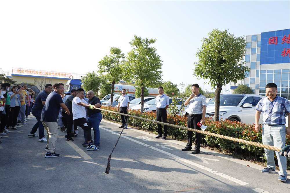 圖:踩氣球 最后一個(gè)項(xiàng)目是團(tuán)體項(xiàng)目“拔河比賽”,這也是每年的傳統(tǒng)保留項(xiàng)目。比賽共分4隊(duì):工程公司聯(lián)隊(duì)、生產(chǎn)技術(shù)聯(lián)隊(duì)、客服運(yùn)營(yíng)聯(lián)隊(duì)及綜合聯(lián)隊(duì),每隊(duì)15人,采取抽簽方式捉對(duì) “廝殺”,三局兩勝,在兩組勝方中再?zèng)Q出冠、亞軍。經(jīng)過第一輪比賽,綜合聯(lián)隊(duì)、工程公司聯(lián)隊(duì)惜敗,生產(chǎn)技術(shù)聯(lián)隊(duì)、客服運(yùn)營(yíng)聯(lián)隊(duì)晉級(jí)。接下來,就是冠軍爭(zhēng)奪戰(zhàn),兩個(gè)強(qiáng)隊(duì)狹路相逢,強(qiáng)強(qiáng)對(duì)決,勢(shì)均力敵,難分勝負(fù)。雙方隊(duì)員都憋足了一股勁,欲“決一死戰(zhàn)”。一聲令下,決賽開始,一場(chǎng)廝殺在所難免,現(xiàn)場(chǎng)進(jìn)入白熱化狀態(tài),吶喊聲、助威聲響徹云霄。盡管生產(chǎn)技術(shù)的猛將們已拼盡全力,奈何對(duì)手實(shí)力雄厚,最終,象征勝利的掛繩越過標(biāo)線,敗下陣來,客服運(yùn)營(yíng)聯(lián)隊(duì)以2:0的絕對(duì)優(yōu)勢(shì)奪冠。這也是客服運(yùn)營(yíng)聯(lián)隊(duì)連續(xù)多年冠壓群雄,穩(wěn)居冠軍寶座。祝賀他們!