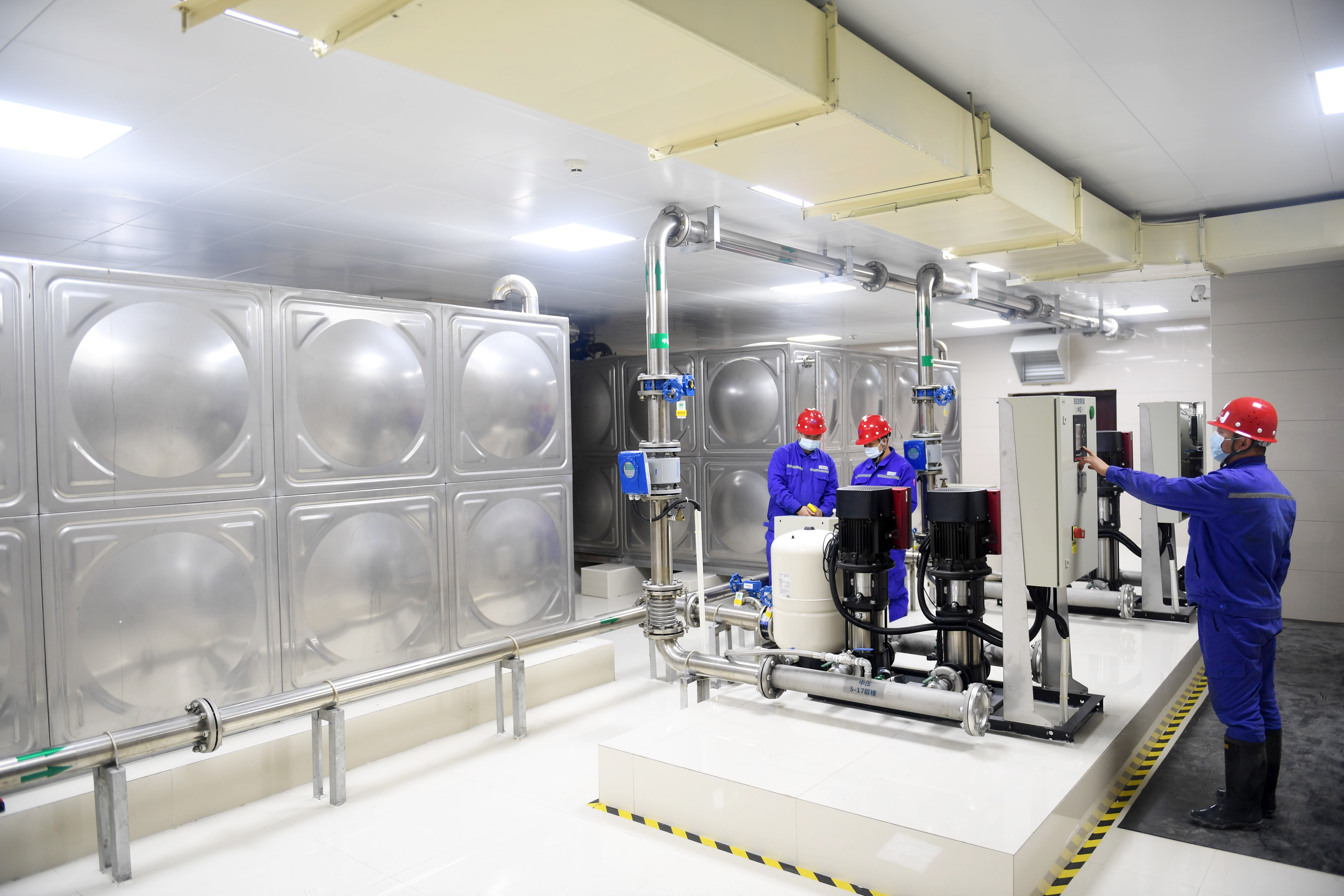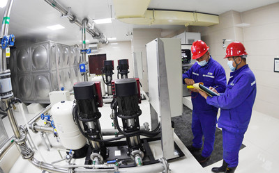 雖身處寒冬,但清洗工作完畢后,工作人員卻早已大汗淋漓。最后,設(shè)備維護工程師對控制柜、水泵等設(shè)備逐一進行檢測調(diào)整和潤滑保養(yǎng),確保二供設(shè)施安全運行。