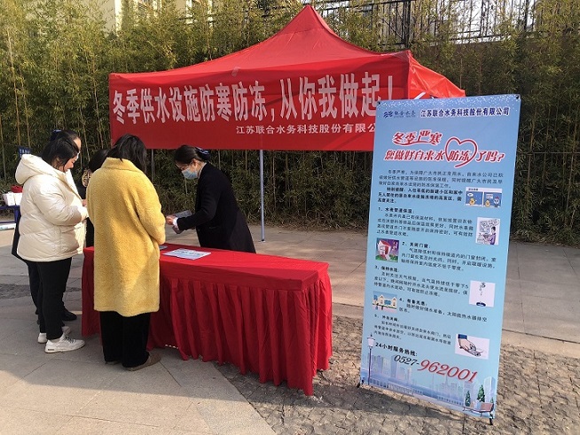 寒冬將至,氣溫日漸降低,為確保滿足廣大居民用戶在寒潮狀態(tài)下正常用水需求,江蘇聯(lián)合水務科技股份有限公司宿遷供水公司客服部開展了防寒宣傳進小區(qū)活動。走出公司,進入小區(qū),近距離接觸和了解居民住戶的用水需求,并對各個物業(yè)和小區(qū)居民進行了多方位的防凍措施普及和知識講解。