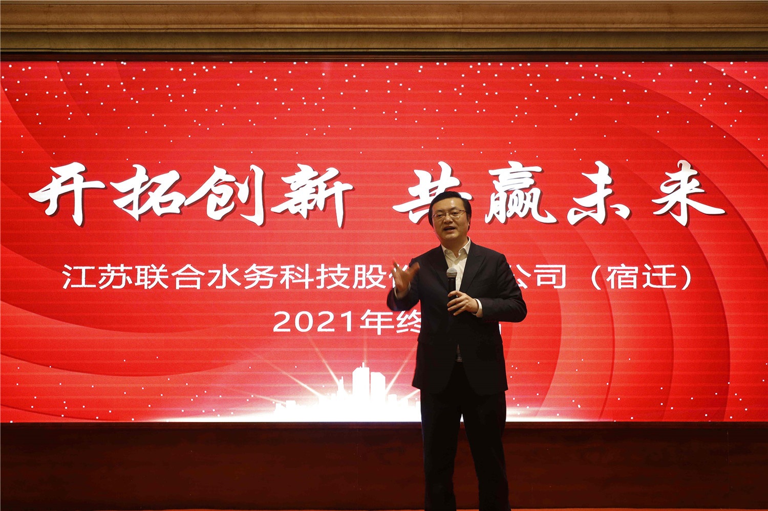 牛去虎來辭舊歲,人壽年豐迎新春。2022年1月26下午,聯(lián)合水務(wù)宿遷供水公司2021年總結(jié)表彰大會在運(yùn)河金陵大酒店圓滿召開。聯(lián)合水務(wù)常務(wù)副總裁劉猛先生、聯(lián)合水務(wù)運(yùn)營管理中心總經(jīng)理王歡先生親臨大會現(xiàn)場,宿遷公司部分中層以上管理人員、先進(jìn)員工及員工代表參加了會議,會議由聯(lián)合水務(wù)宿遷區(qū)域副總經(jīng)理趙軍主持。會上,回顧了過去一年的工作,總結(jié)經(jīng)驗,分析不足,對新的一年進(jìn)行科學(xué)謀劃,探討新思路,開拓創(chuàng)新,共贏未來。同時,本次大會對2022年先進(jìn)部門及先進(jìn)員工進(jìn)行了表彰和獎勵。